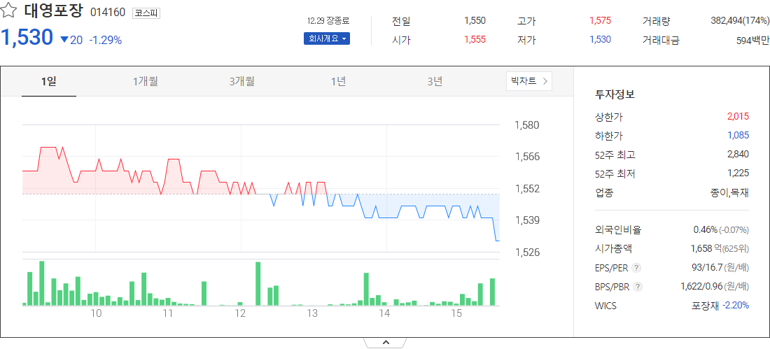 대영포장 (종이목재 관련 주식)