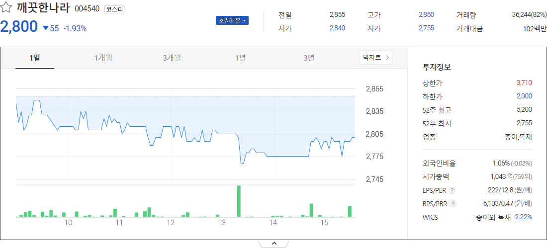 깨끗한나라 (종이목재 관련 주식)
