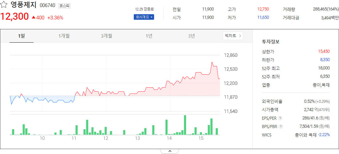 영풍제지 (종이목재 관련 주식)