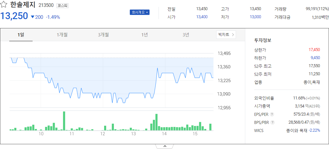 한솔제지 (종이목재 관련 주식)