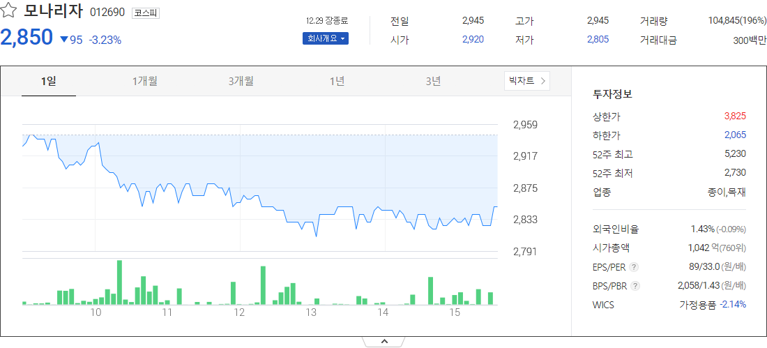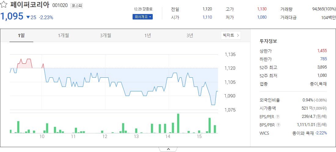페이퍼코리아 (종이목재 관련 주식)