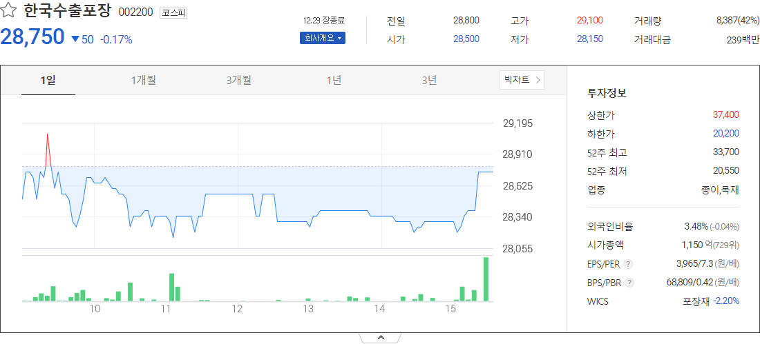 한국수출포장 (종이목재 관련 주식)