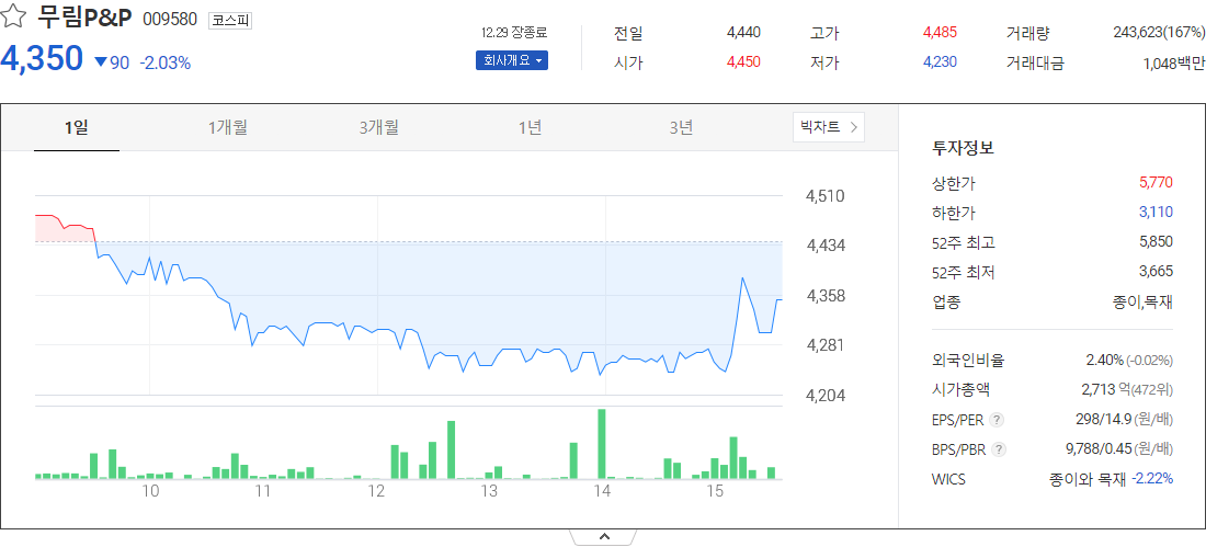 무림P&P (종이목재 관련 주식)
