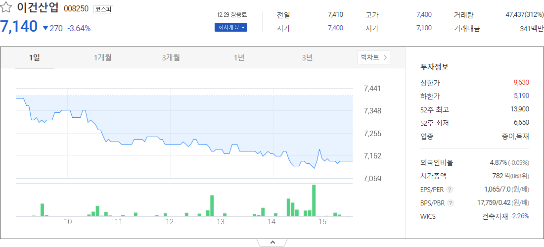 이건산업 (종이목재 관련 주식)