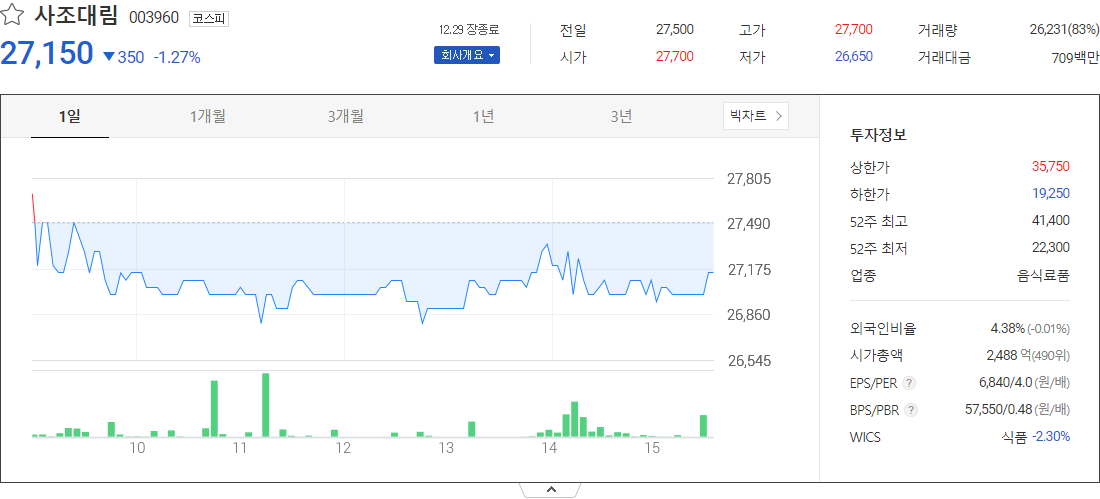 - 동사는 1964년 설립되어 식품, 식용유 제조 및 판매업과 원양어업을 주요 사업으로 하는 회사로, 1976년 유가증권시장에 상장함