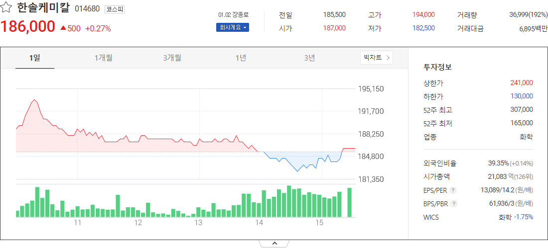- 동사는 2001년 4월 주식회사 LG화학에서 분할 신설되어 유가증권시장에 상장됨