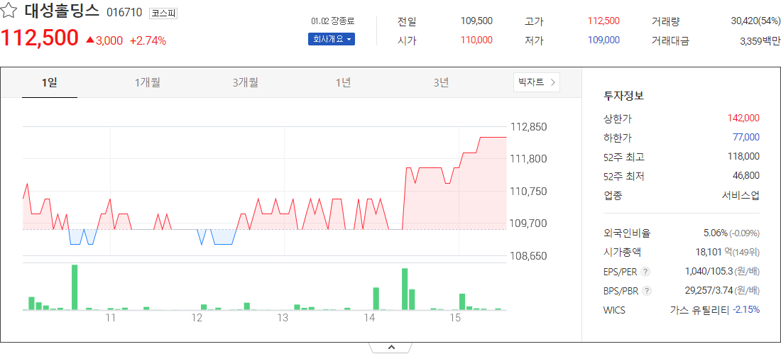 대성홀딩스 (서비스업 관련 주식)