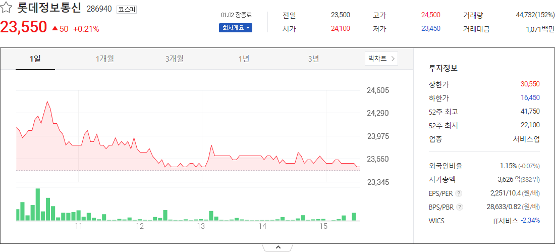 롯데정보통신 (서비스업 관련 주식)