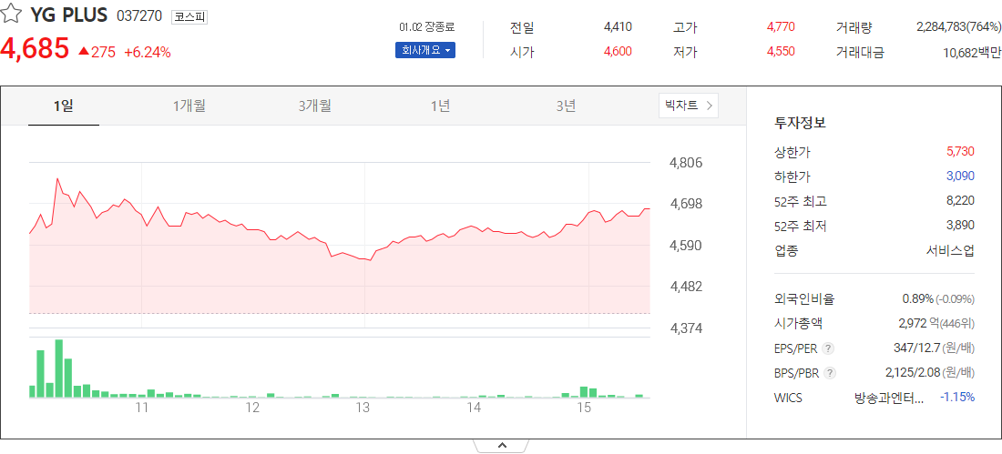 YG PLUS (서비스업 관련 주식)