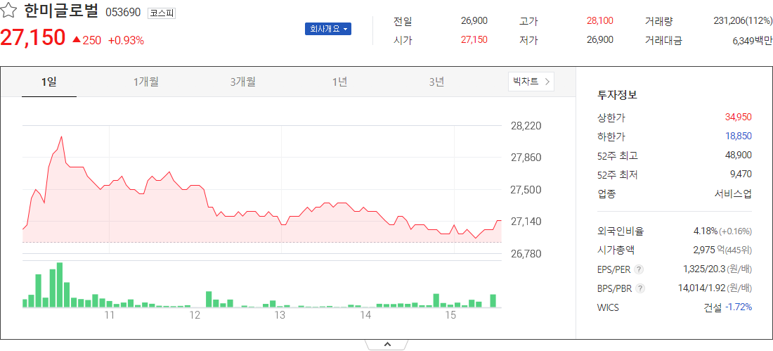 한미글로벌 (서비스업 관련 주식)