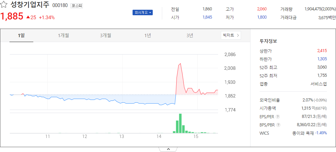 성창기업지주 (서비스업 관련 주식)