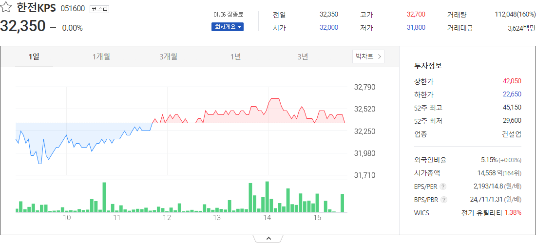 한전KPS (건설업 관련 주식)