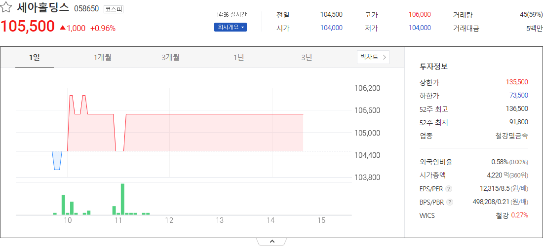 - 세아제강)의 투자사업부문과 임대사업부문이 인적분할 방식으로 분할신설되었으며, 2001년 7월 한국거래소 유가증권시장에 재상장함