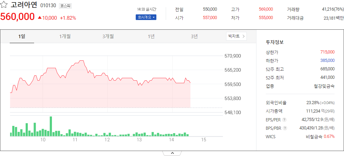 고려아연 (철강금속 관련 주식)