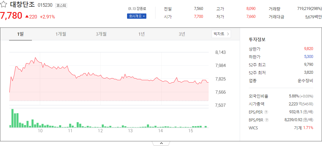대창단조 (운수장비 관련 주식)