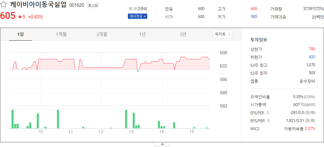 케이비아이동국실업 (운수장비 관련 주식)