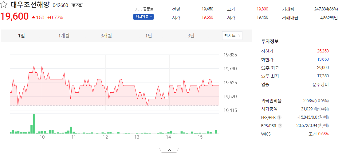 대우조선해양 (운수장비 관련 주식)