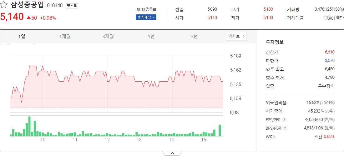 삼성중공업 (운수장비 관련 주식)