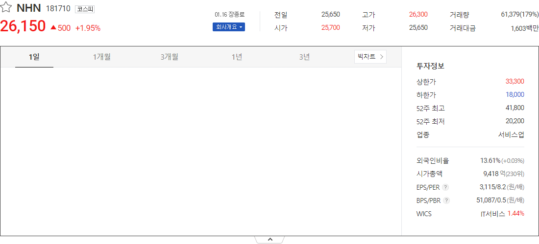 - 2013년 8월 네이버의 게임사업 부문을 인적분할하여 설립되었으며, 현재 온라인 및 모바일게임 사업과 간편결제 서비스 및 웹툰 서비스 등을 운영하고 있음