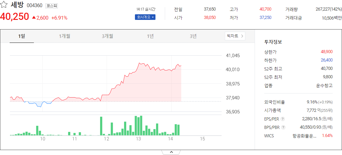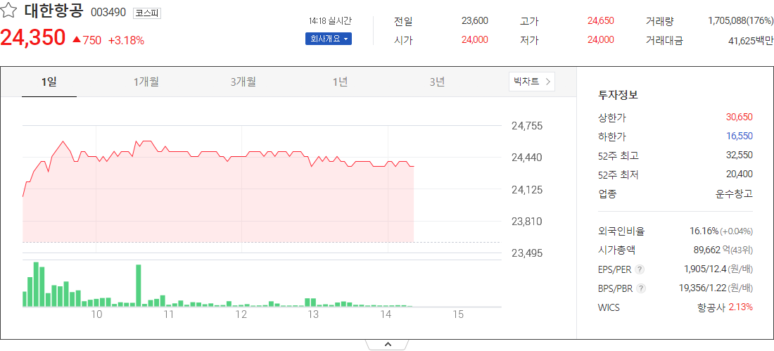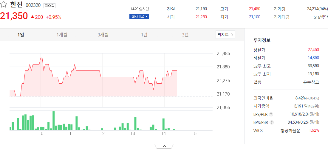 - 1968년에 설립되어 1976년에 유가증권시장에 상장한 항공기 지상조업, 장비대여 및 항공화물 하역 등 용역 사업 및 먹는 샘물 제조 및 판매업을 영위하고 있음