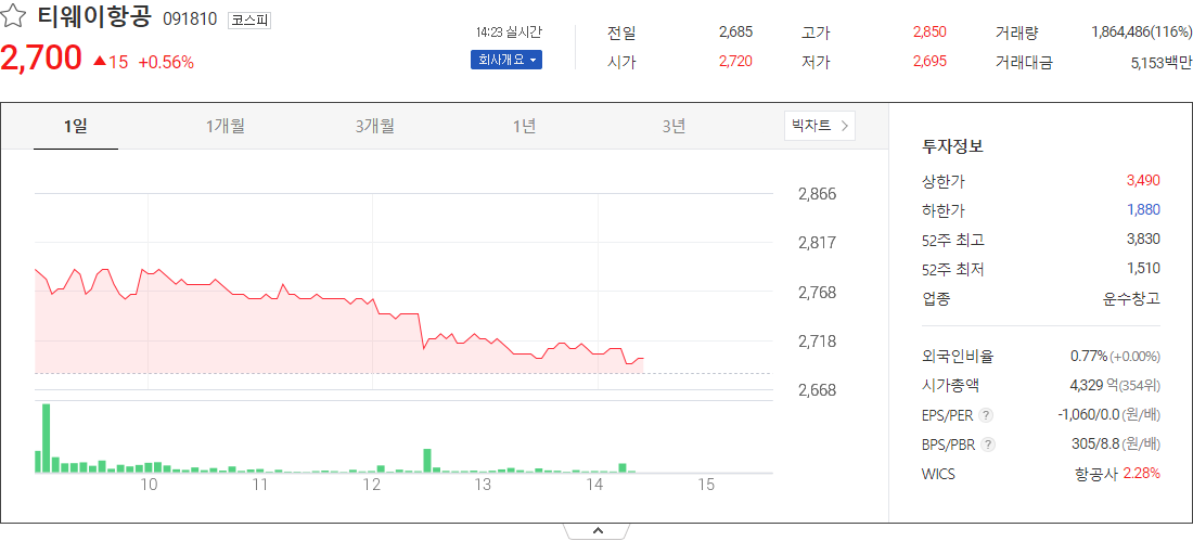 - 동사는 2003년 5월 19일에 설립되어, 2010년 9월 국내항공운송사업 운항증명, 2011년 7월 국제항공운송사업 운항증명을 각각 취득하여 국내 및 국제항공 여객운송업을 영위하고 있음
