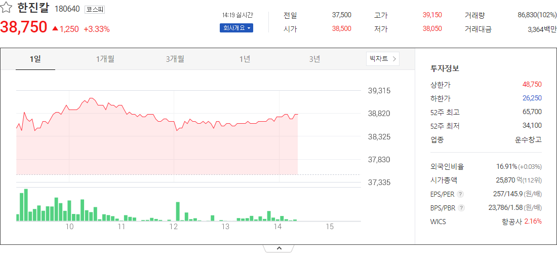 - 동사는 2013년 8월 1일을 분할기준일로 대한항공으로부터 인적분할 방식으로 설립되었으며, 2013년 9월 16일 유가증권시장에 상장함